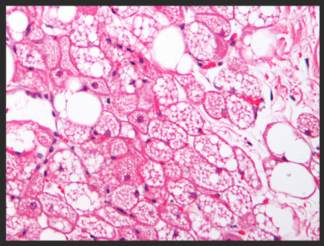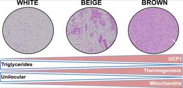 · Appearance: Smaller cells with multiple lipid droplets and a more abundant mitochondrial population. The mitochondria give BAT its characteristic brown color.