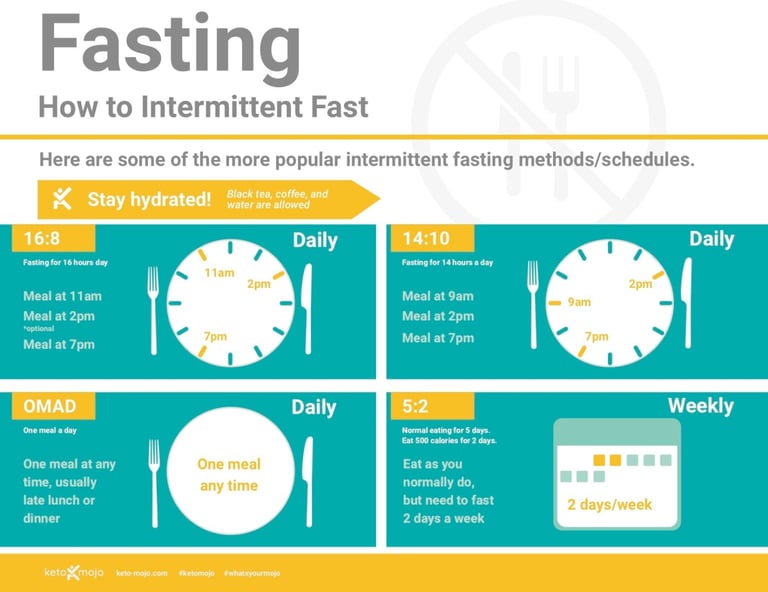Select the intermittent fasting method that best suits your needs and preferences. You can experiment with different approaches until you find what works best for you.